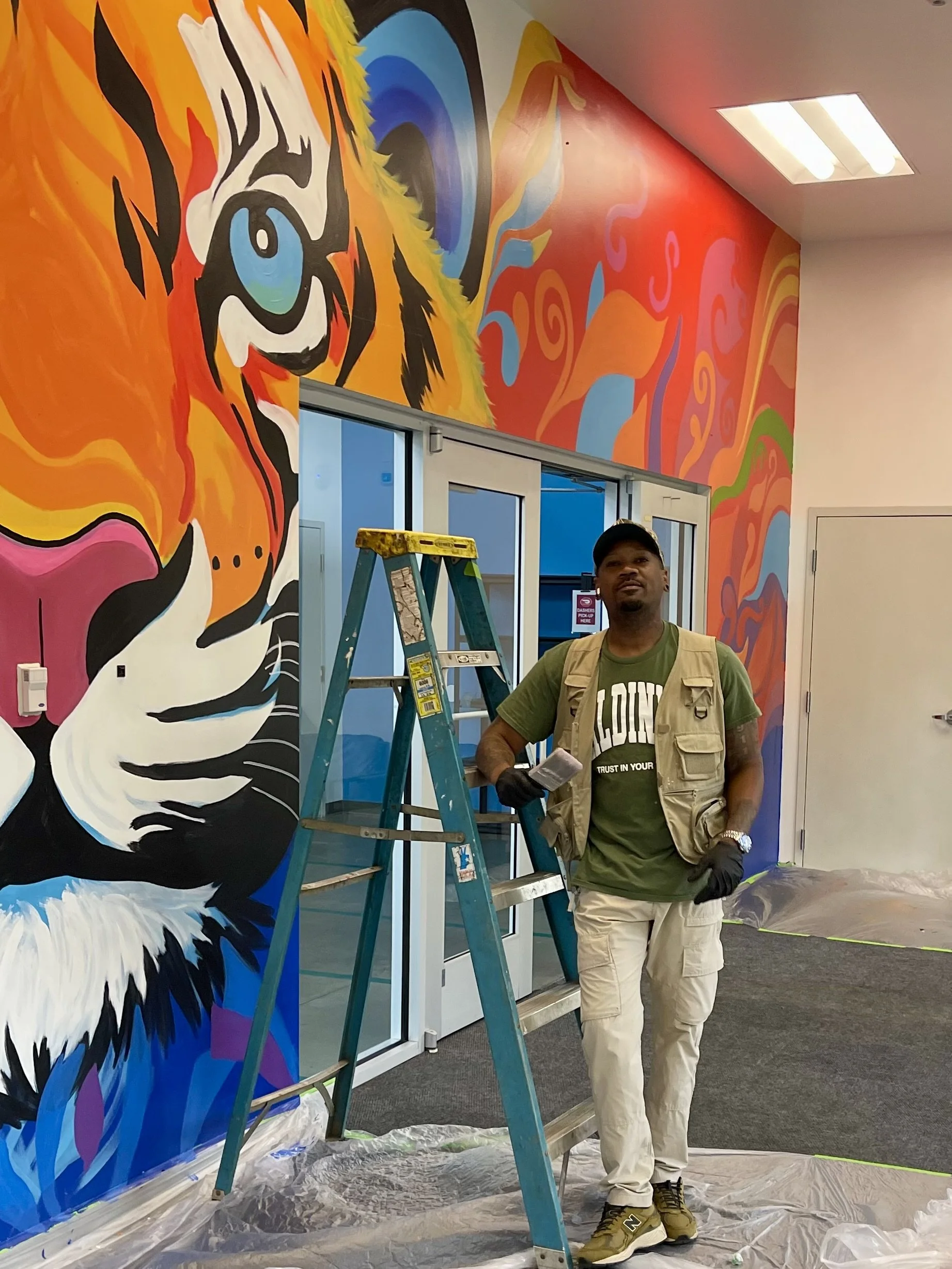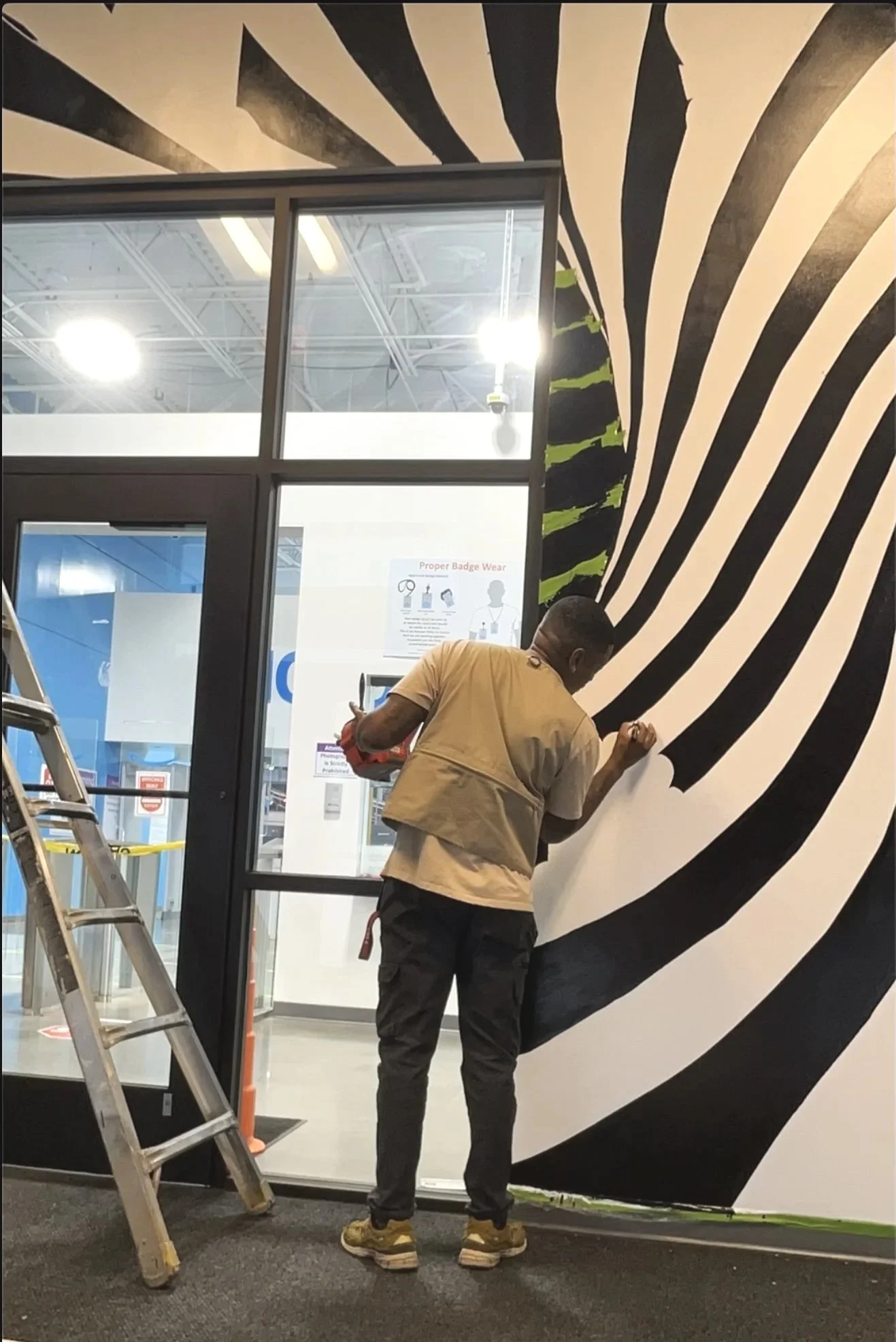 His work includes large-scale installations for Amazon distribution centers and educational institutions, with a focus on enhancing environments through visual storytelling and intentional design.